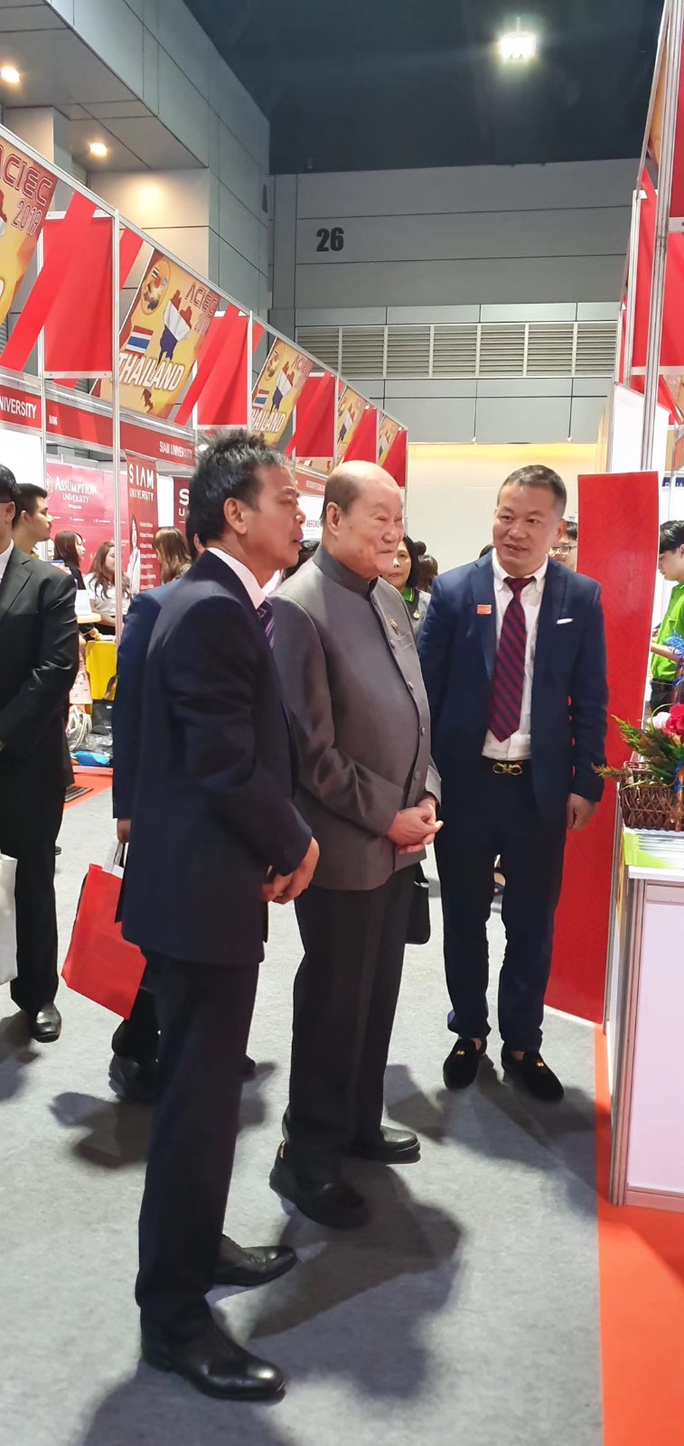 由亚洲国际贸易投资商会(AITIA)、泰国大学校长理事会、 泰国民办高等教育商会、泰国皇家理工大学联合会、泰国皇家师范大学联合会、泰国职业教育商会共同主办的“首届泰中教育国际合作与发展(曼谷)博览会”于2019年11月6-10日在IMPACT会展中心举办,来自中国北京、重庆、山东、湖北、江西、河南等省五十余名代表及泰国20余所高校参展参会。