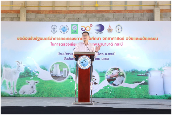 还有甲米府的山羊牧民社区在国家研究局中,介绍了一个项目展览,以提高南部地区推动山羊种植的水平。通过组织牛奶种植和生产行业的供应链,山羊肉和山羊奶的复合饲料,牛奶加工与创新 。为了提高饲养山羊的效率在国家科学技术发展计划的支持下,有一个研究项目旨在推动南部地区的山羊养殖。 2020-2022年的7个项目如下:1.南部山羊产业的市场潜力和供应链管理。 2.南方山羊奶的饲养和山羊奶生产的研究与开发。 3.从农业和工业剩余产品中提取创新的预混饲料,用于南部的山羊肉和山羊奶。 4.搜索和基因型,分子标记,用技术剪断基因组。通过测序进行基因分型(GBS),以识别和改善肉山羊的基因型 5.通过使用荷尔蒙程序增强山羊繁殖。 6. 模型研发用于在山羊中测定黑素瘤。 7.在泰国南部开发了符合GMP标准的山羊奶加工厂和原始山羊奶质量分析服务中心。
